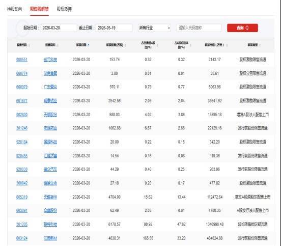 【限售解禁】